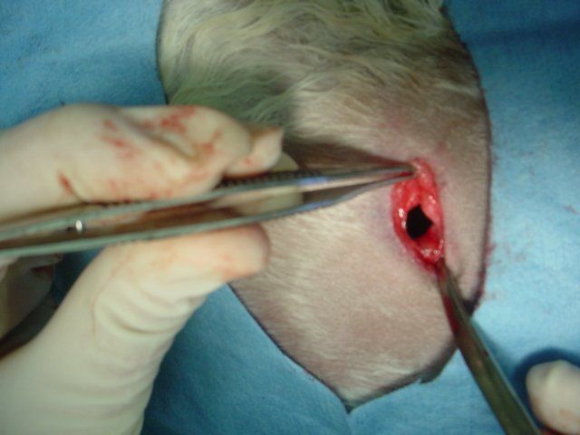 After treatment for shock, Prince was given general anesthesia and his wounds were explored. This is one of the four small punctures that Prince received. The puncture was approx. 1/2 cm in diameter and appeared to be very superficial.