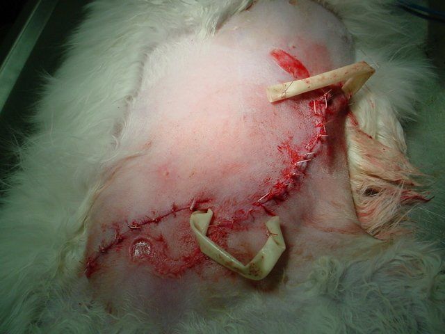 Scarlet recovered completely. The drain was removed after 3 days and the sutures were removed after an additional week. This is Scarlet at the time of suture removal. Over the next several weeks the scars will continue to fade and her hair will grow back in.
