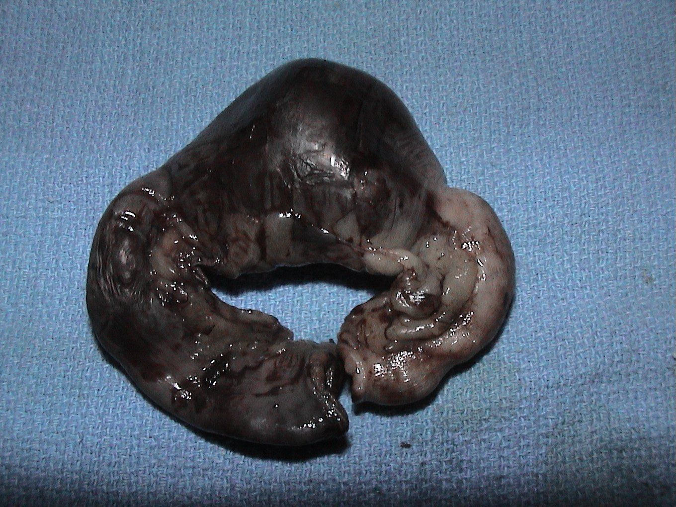 In this picture (below), the rock has been removed from the piece of resected intestine.